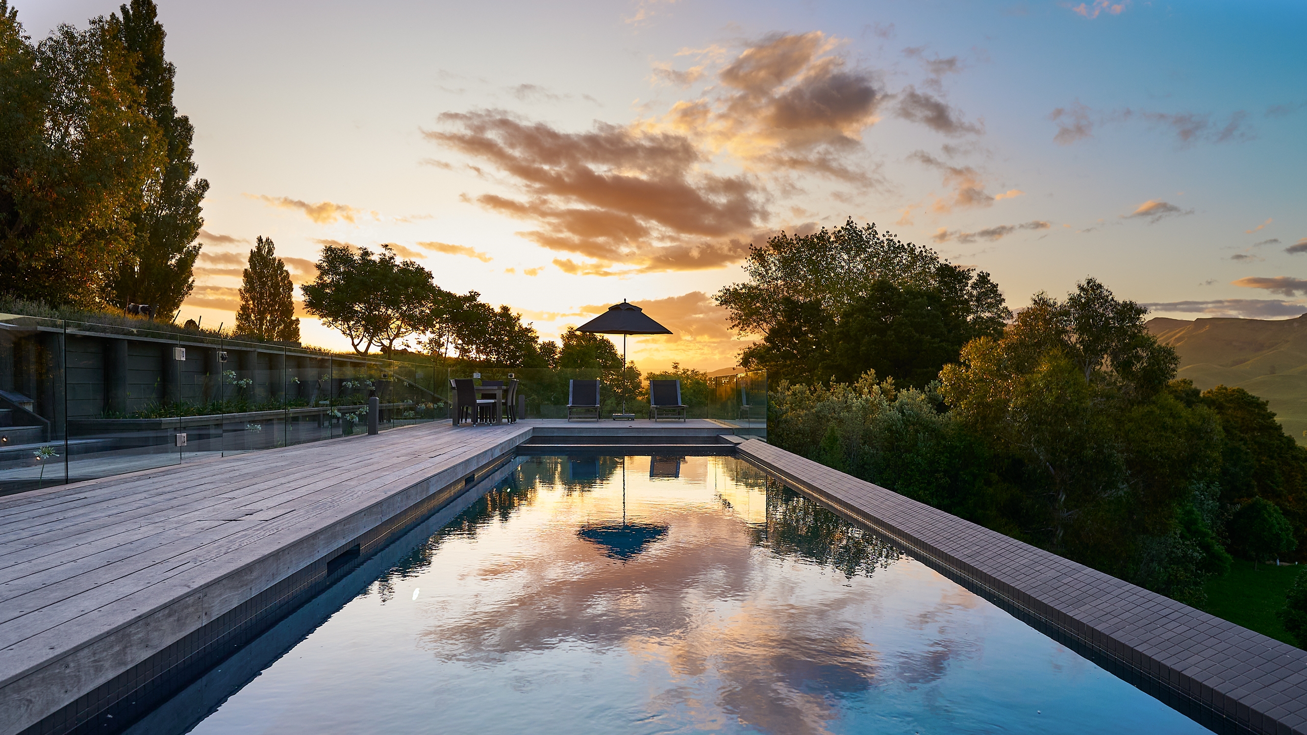 With a beautiful sun-drenched north facing window seat, it is the perfect spot to read a book on a winters day. The outdoor pool & spa lounge seating area has one of our most impressive views across the valley and out to Te Mata Peak. It is a short walk down to the communal tennis court at Poplars Upstream.